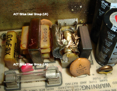 This is how the capacitor looked after taking apart the power supply casing. As can be seen the capacitor has blown apart.