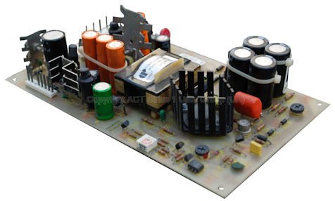 Click to see larger image in new window. This is the most common power supply fitted. Should this power supply fail a large number of components will have to be replaced. Due to the low impedence of the primary circuit all components should be removed before testing. The usual components to fail are: